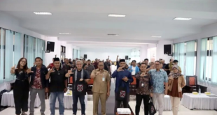 Pembicara bersama peserta di workshop WhatsApp “Lawan Misinformasi untuk Pemilu Sehat” di Ternate. Donny BU Chairman Siberkreasi (empat dari kiri), Dr. La Ode Irman Dekan Fakultas Agama Islam UMMU (empat dari kanan), Irwan M Saleh Kepala Sekretariat Bawaslu Maluku Utara (tiga dari kanan), Indriyatno Banyumurti Executive Director ICT Watch (dua …